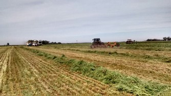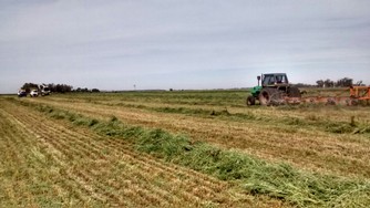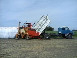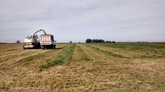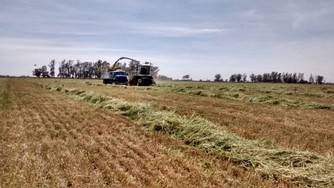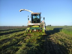 Contamos con un equipo compuesto por Picadora de forraje CLAAS 860, con cabezal Ru450 de 6 surcos a 70cm, disponemos de procesador de grano (cracker) de sorgo y maíz, y recolector de pasturas, embolsadora Visconti 2012 de 9 pies. El traslado del material se realiza mediante camiones chasis volcadores.